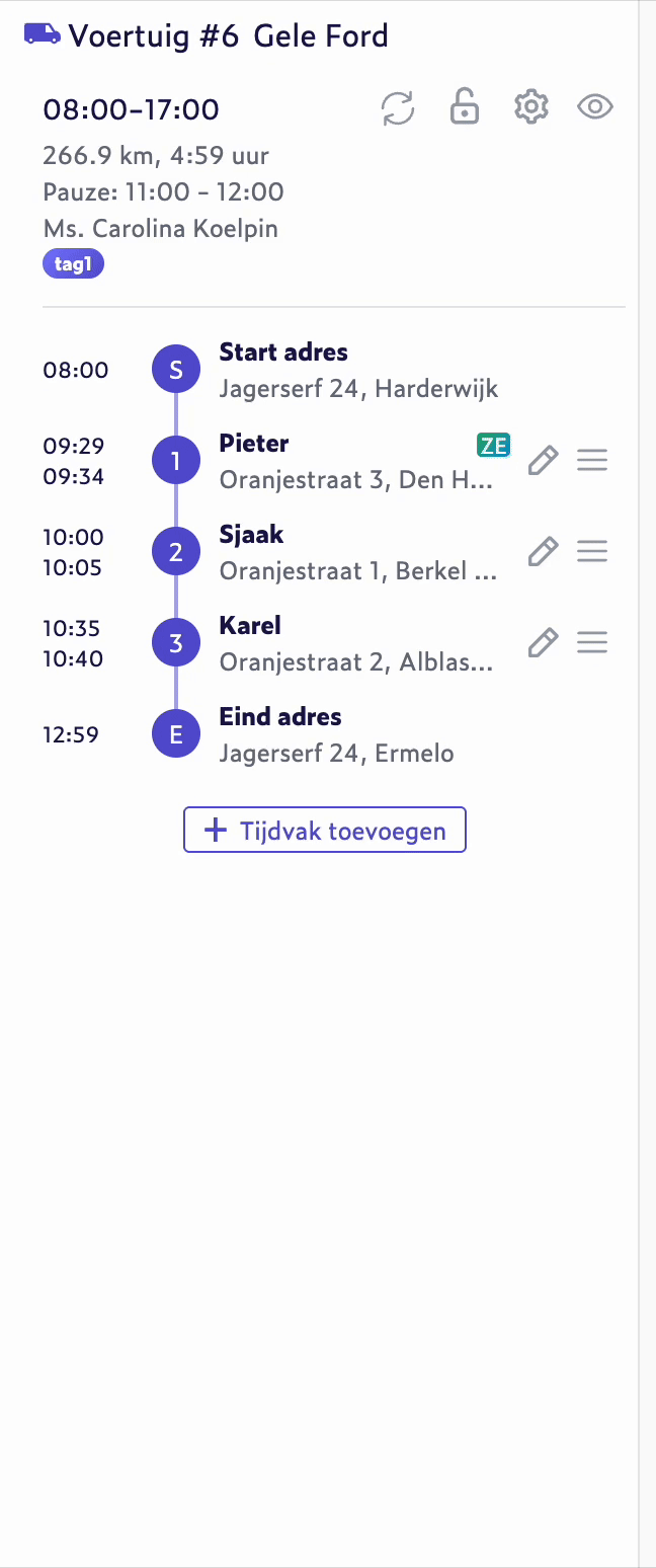 Zo zie je direct welk voertuig bij welke route hoort. Dat zorgt voor meer overzicht, herkenning en gemak. Je stelt de kleur in door het voertuig te bewerken en daar een kleur te kiezen. -