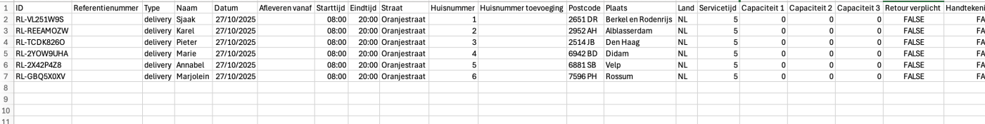 Vanaf nu gebruiken beide exact dezelfde indeling.Dat betekent dat je eenvoudig: opdrachten kunt exporteren, in Excel snel aanpassingen kunt doen en het aangepaste bestand direct weer kunt importeren — zonder extra aanpassingen. Superhandig voor snelle correcties of bulkupdates!